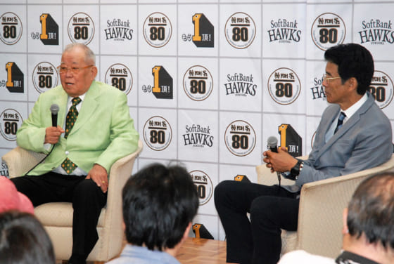 もちろん、野村氏が監督兼捕手、江本氏がエースとして戦った阪急とのプレーオフ(1973年)の勝利秘話など、往年のファンにはたまらないトークもしっかりと聞かせてくれた。また、野村氏は現在のホークスが常勝軍団になった大功労者として孫正義オーナーの名前を挙げ、「『金は出すけど口は出さん』は、オーナーとして最高のひと言」と称えた。(藤浦一都 / Kazuto Fujiura)